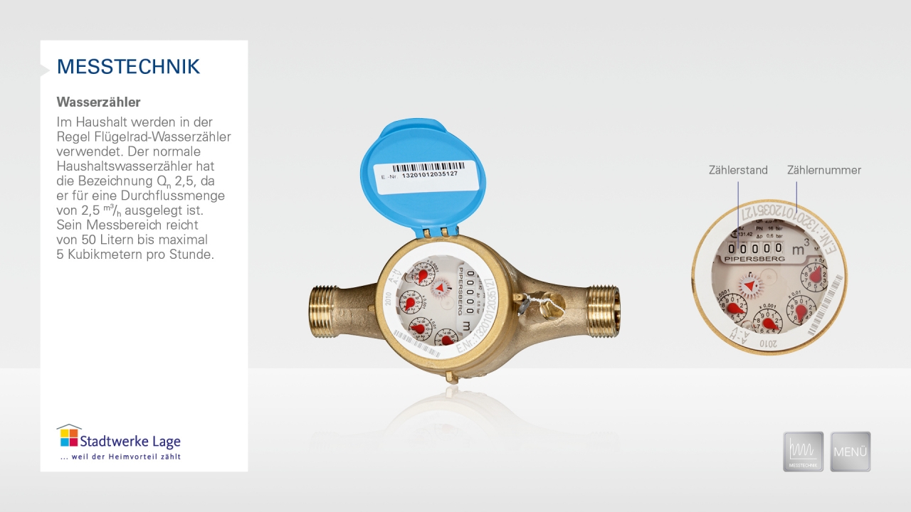 Außerdem können Sie verschiedene Informationen am Zähler direkt ablesen, die Ihnen helfen können Ihren Wasserverbrauch besser einzuschätzen und zu optimieren. Ein Bespiel dafür ist die Leckargeerkennung.